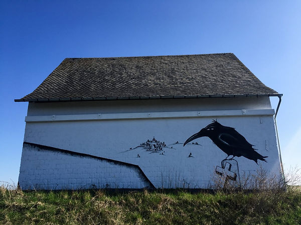 A barn near Bell an der Straße was artistically and meaningfully painted by the "Düsseldorf Mural Group." A cow – representing the rural area of ​​the Hunsrück region – has a rocket on its horns. It is intended to demonstrate the resistance of the Hunsrück residents to the storage of nuclear missiles. It has been restored several times since then and was repainted just two years ago.